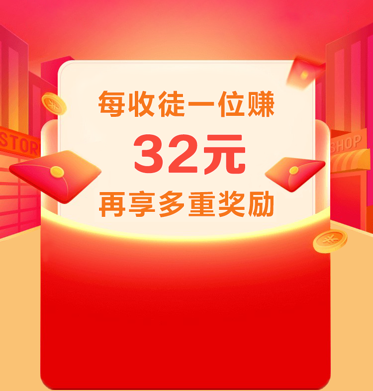 1、每招收1位徒弟您赚32元,奖励分6个阶段发放,限注册的10天内完成新手任务。